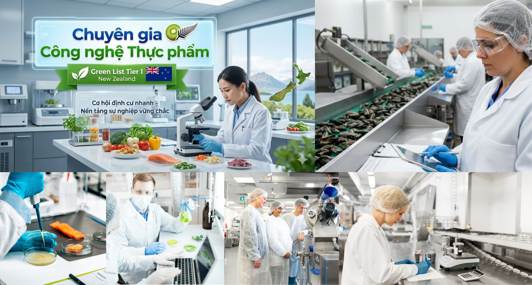 Bài viết này phân tích chi tiết điều kiện, mức lương yêu cầu, trình độ học vấn và cơ hội nghề nghiệp của nhóm ngành Khoa học – Công nghệ thực phẩm thuộc Green List Tier 1 New Zealand năm 2026.